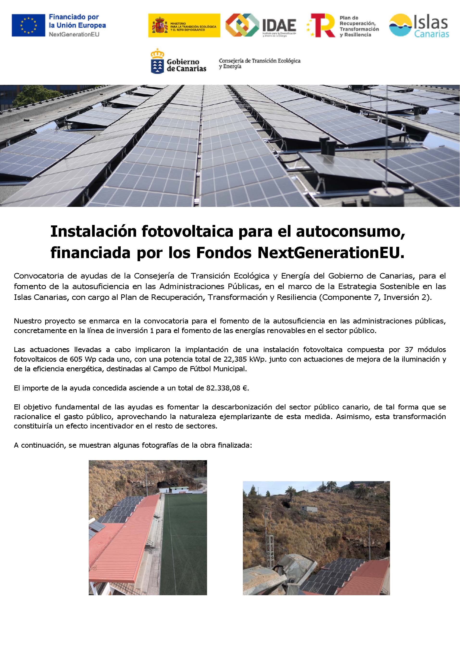 Descripción del proyecto: La renovación del alumbrado exterior en el Municipio de Tijarafe en la provincia de Santa Cruz de Tenerife consiste en la sustitución parcial de las luminarias existentes de vapor de sodio de baja presión por luminarias LED más eficientes.